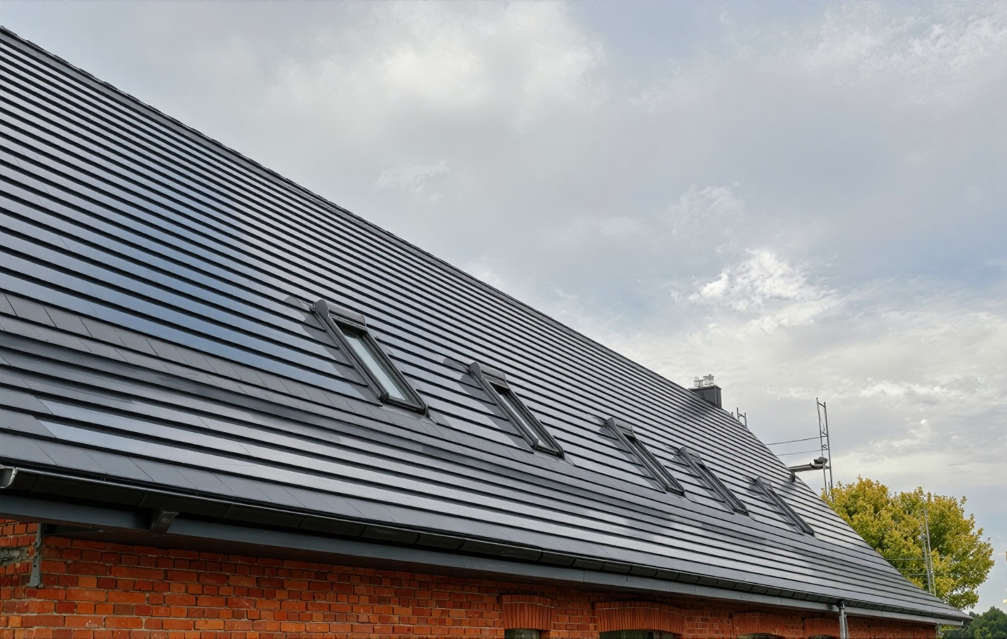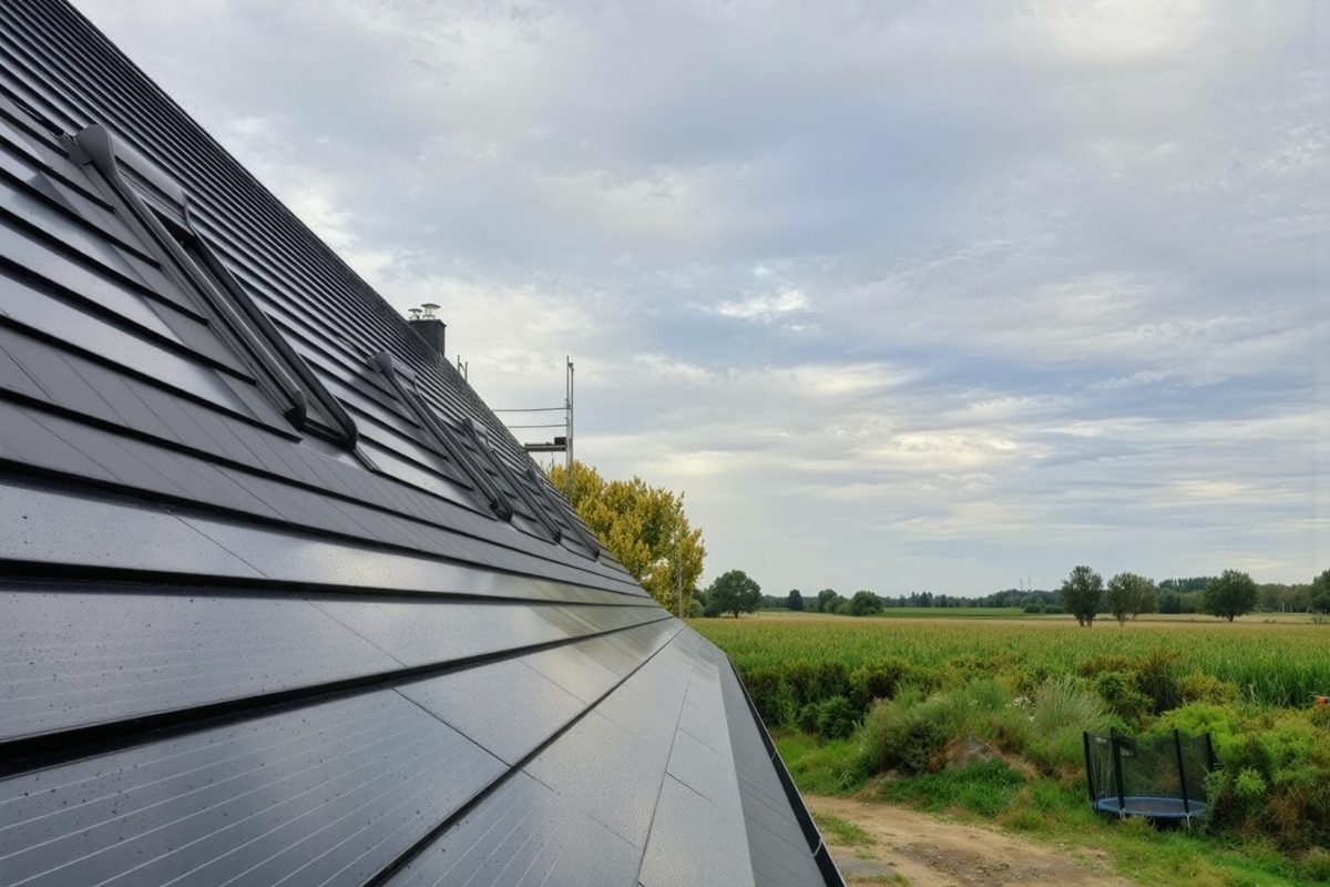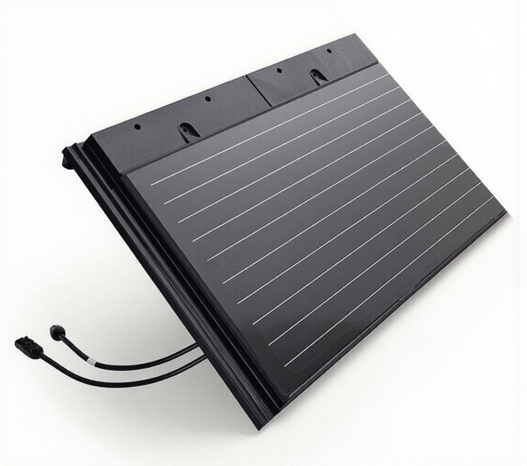 The PLANUM PV-XS module is suitable for the PLANUM GENERON roof tile. The covering width corresponds to two roof tiles (PLANUM GENERON) and the variable covering length is between 32.5 and 34.0 cm. The modules are equipped with suspension hooks, which are used to hang them on the roof battens and screw them in place, and they also have locks on both side ends that correspond to the locks of the PV tile. With a required roof area of approximately 6.6 m² per 1 kWp of output, these two models are also among the most efficient solar tile systems on the market. The longer covering length leads to a slightly higher proportion of the frame, which is used for the aesthetic notch on the lower edge of the tile. This notch simulates the joint between the tiles and thus underlines the aesthetics of the roof tiles.