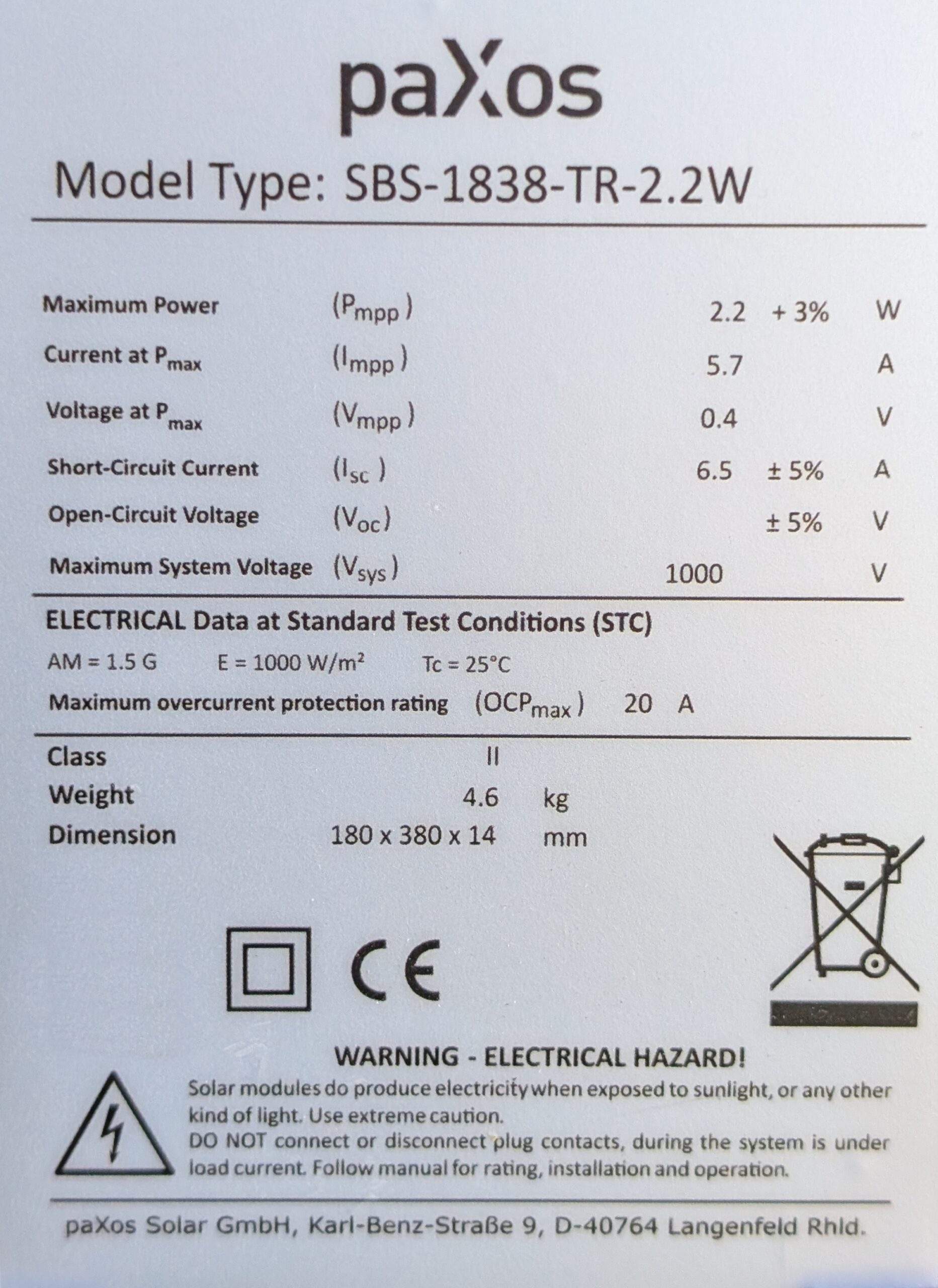 • Power of one module: 11.8 Wp